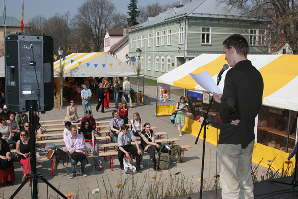4 мая 2006. Тарту. Открытая сцена перед Университетской библиотекой. Вместе с тартускими авторами выступил поэт из Таллинна Дмитрий Краснов.