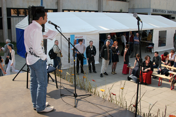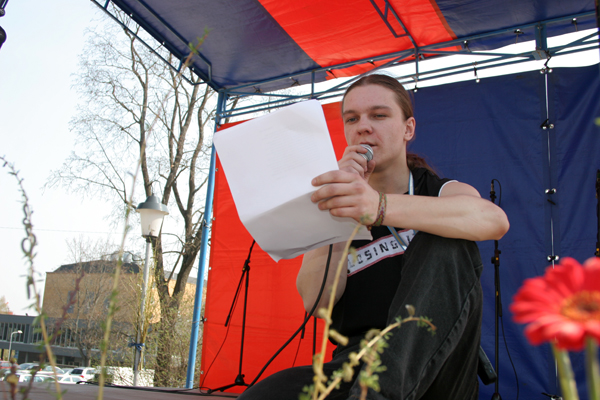 4 мая 2006. Тарту. Открытая сцена перед Университетской библиотекой. В аудиторию: Даниил Попов (Тарту, поэт).