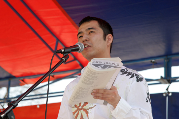 4 мая 2006. Тарту. Открытая сцена перед Университетской библиотекой. Казахский поэт Ербол Жумагулов и "Дружба народов".