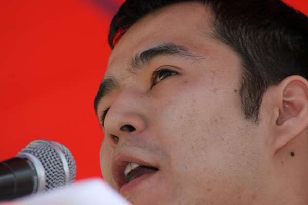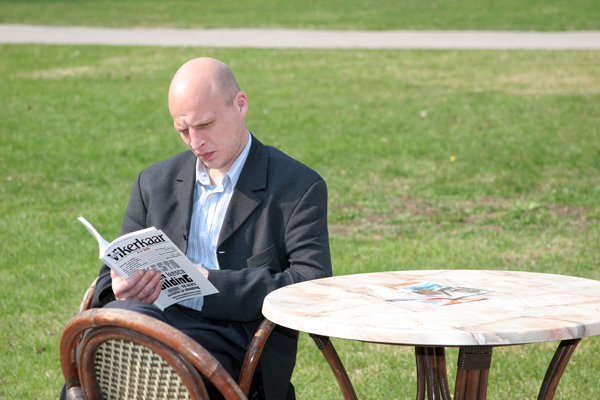 4 мая 2006. Тарту. Открытая сцена перед Университетской библиотекой. Ербол Жумагулов и папарацци.