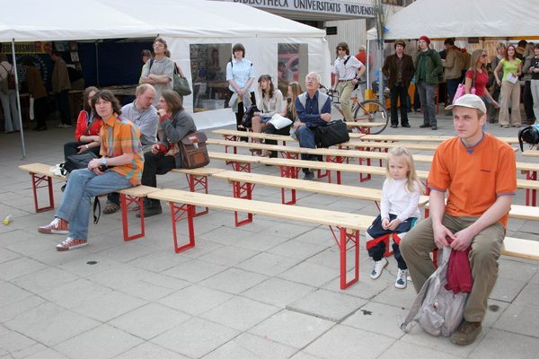 5 мая 2006. Тарту. Открытая сцена перед Университетской библиотекой. Вторая половина дня. Анонс вечернего мероприятия. Публика.