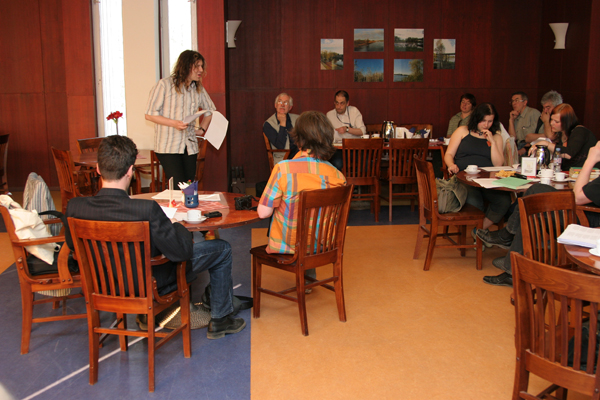 5 мая 2006. Тарту. Кафе Университетской библиотеки. Литературный вечер "3-К": Публика. 2. На переднем плане - Криста Оясаар, секретарь Эстонского Литературного Общества и со-организатор фестиваля.