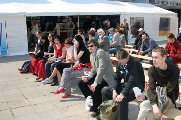 4 мая 2006. Тарту. Открытая сцена перед Университетской библиотекой. Взгляд из аудитории: Ааре Пильв (Тарту, поэт и переводчик русской поэзии).