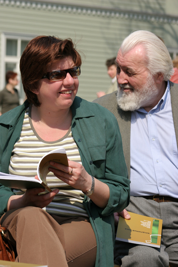 4 мая 2006. Тарту. Открытая сцена перед Университетской библиотекой. В первом ряду: тартуские русские поэты, некоторые из авторов альманаха "Воздушный змей".